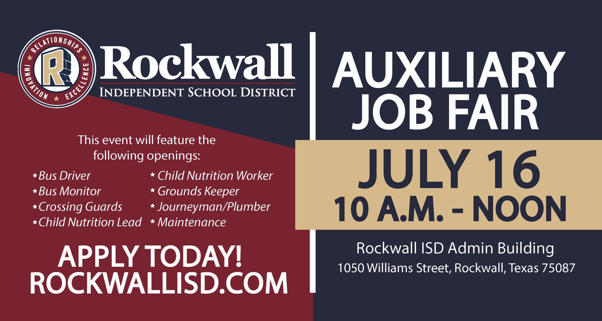 Rockwall ISD Job Fair. Get your career cooking Food and nutrition services job fair is this Saturday April 30. Rockwall ISD will host a virtual job fair on Saturday March 20th from 9 am.